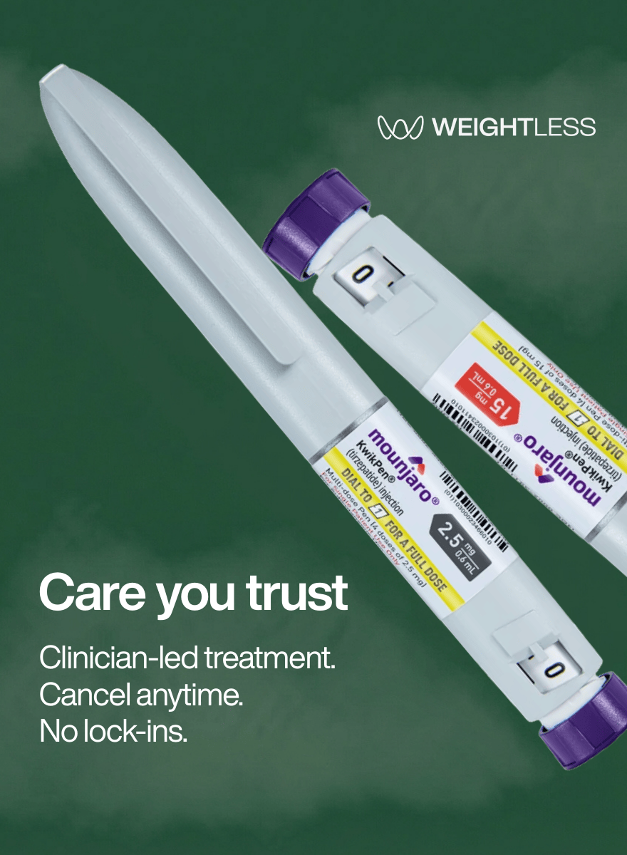 Mounjaro is a weekly weight-loss injection shown in clinical trials to help people lose up to 22.5% of their body weight. Currently considered the most effective treatment of its kind, prescribed only after a UK clinician review.